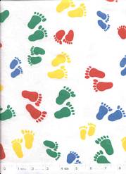 This soft white flannel has bright colored baby feet of different styles. The soft flannel fabric is perfect for a baby quilt backing. We only have a 3/4 yard piece and a fat quarter yard piece left.